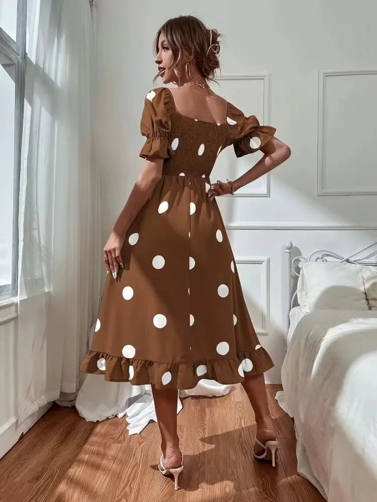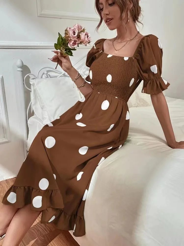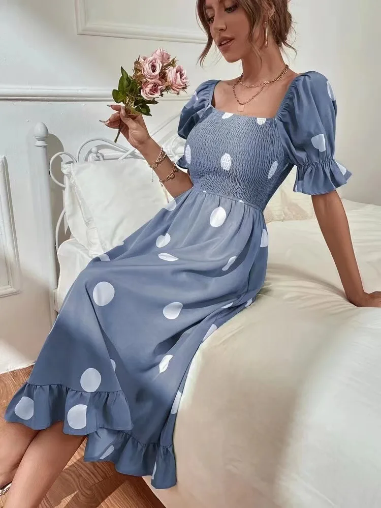 - Product Name: Summer Short Sleeve Square Neck Ruffle High Waist Elegant Maxi Dress