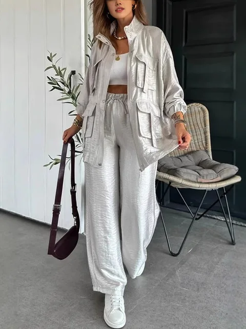 Home>Women's Clothing>Women's Top>Two Pieces>SuperAen European and American Style Women's New 2025 Fashion Solid Color Jacket Trousers Two Pieces Set
