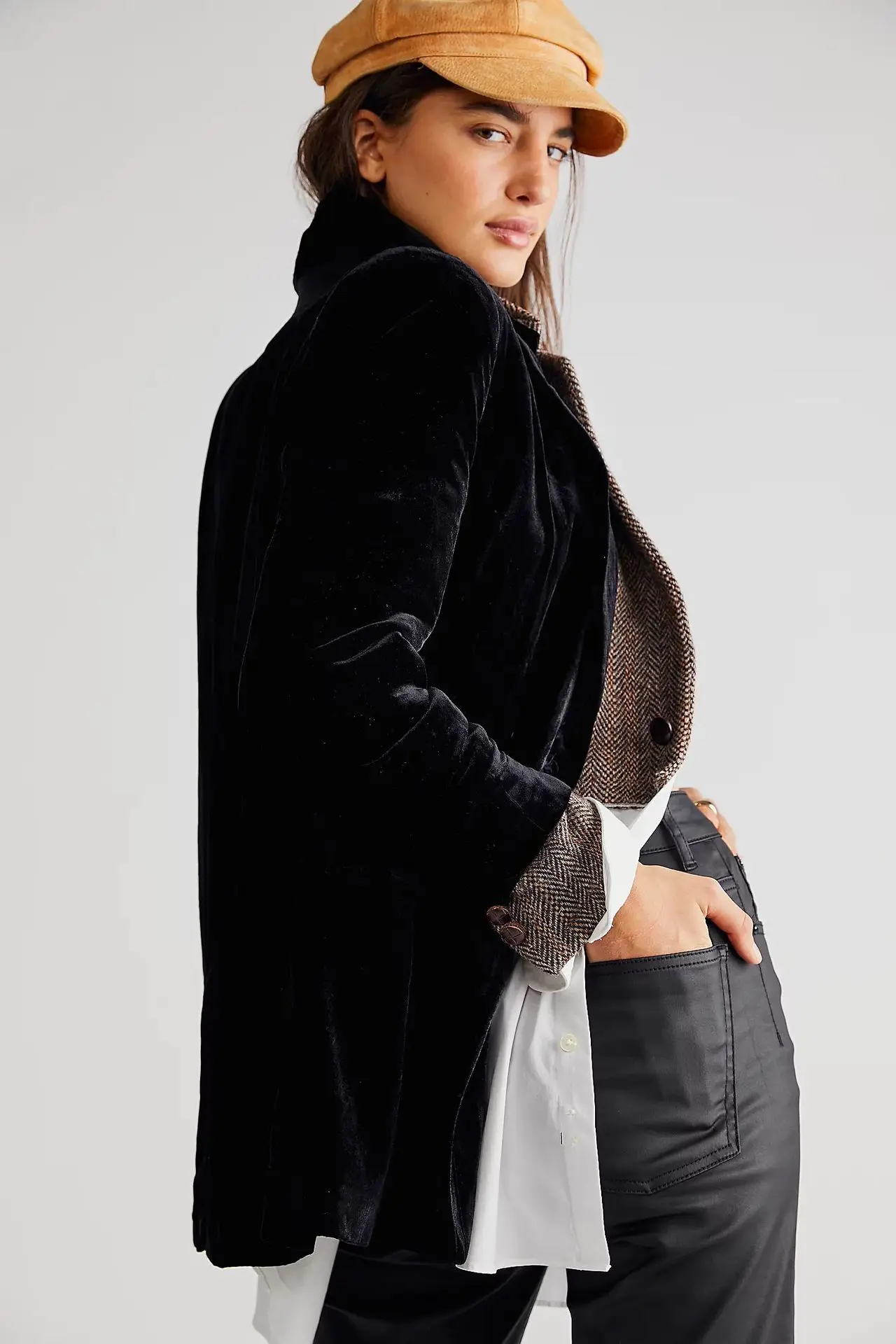 - Product Name: Velvet Fashion Street Lapel Slit Long Sleeve Chic Elegant Blazer