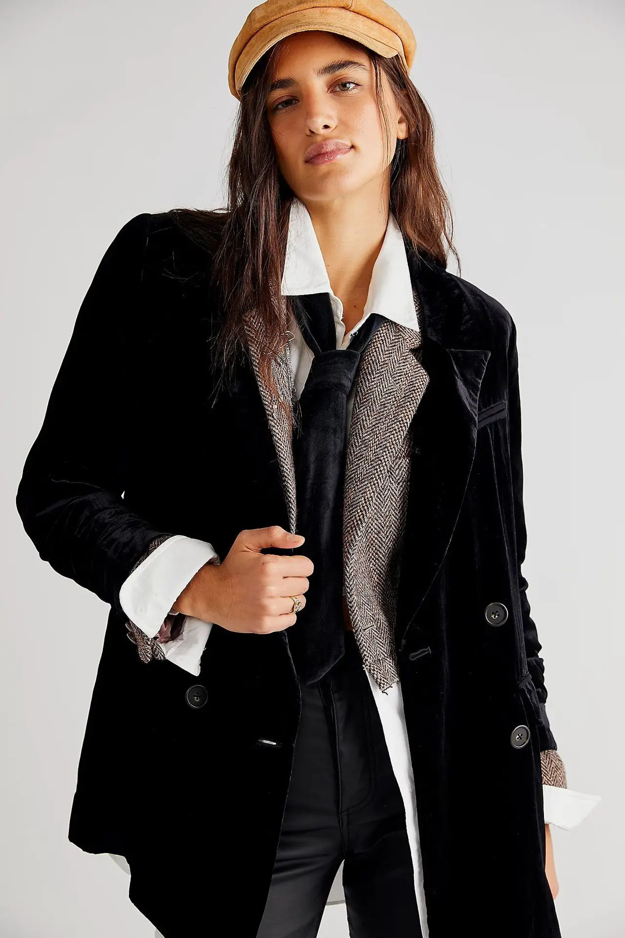 Home>Women's Clothing>Women's Outerwear>Women's Blazers >Velvet Fashion Street Lapel Slit Long Sleeve Chic Elegant Blazer