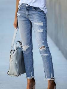- Product Name: Washed Whiskering Raw Hem Ripped Distressed Jeans