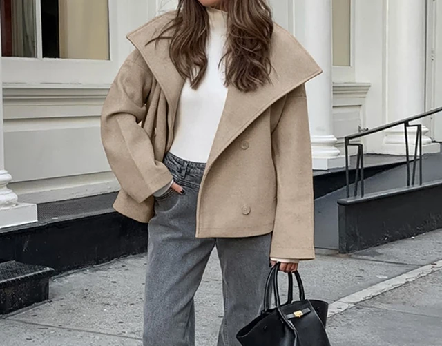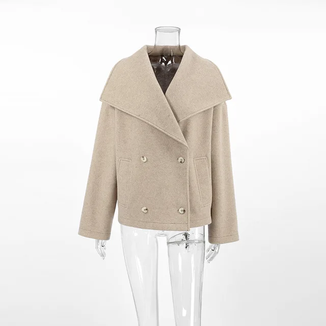 - Product Name: Winter Khaki Woolen Double Breasted Coat High-End Women's Clothing
