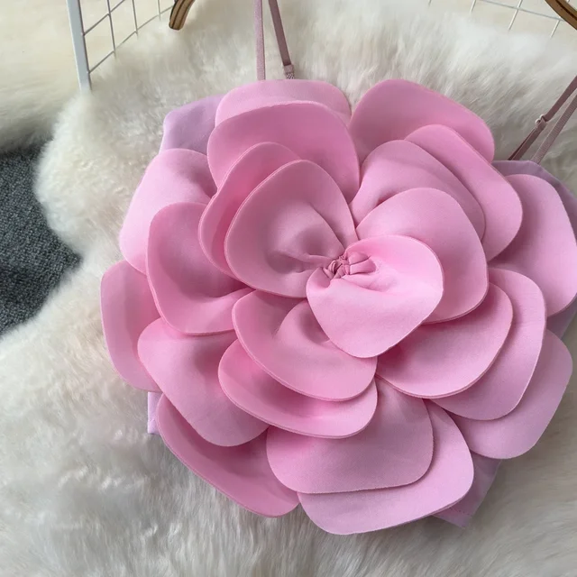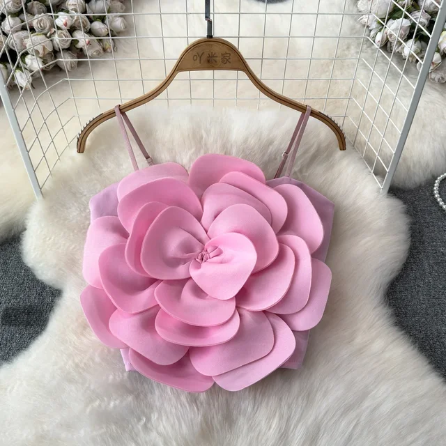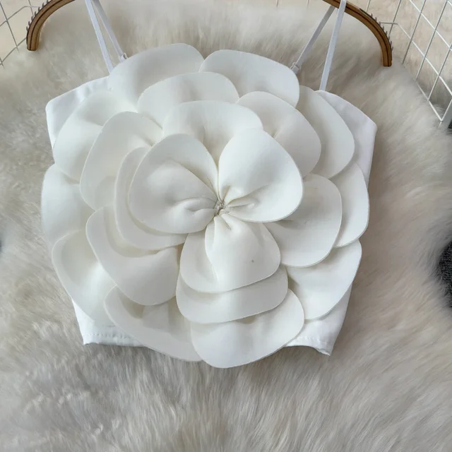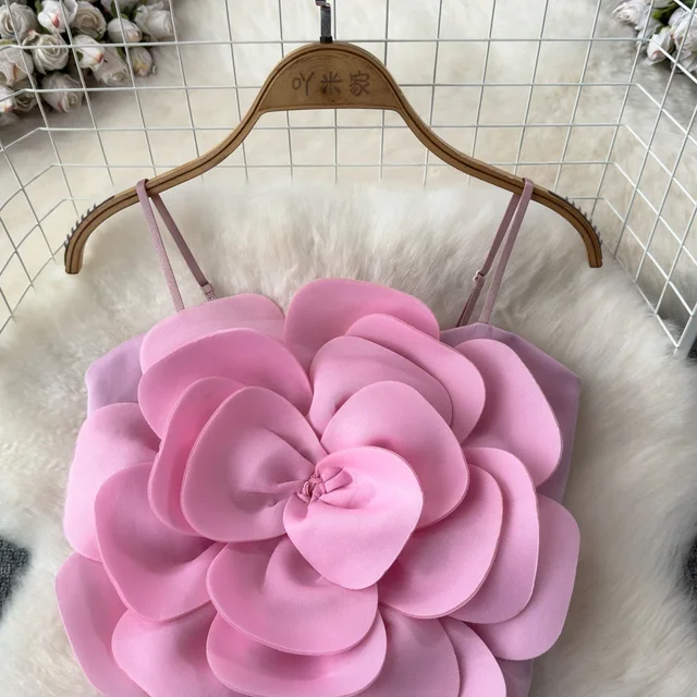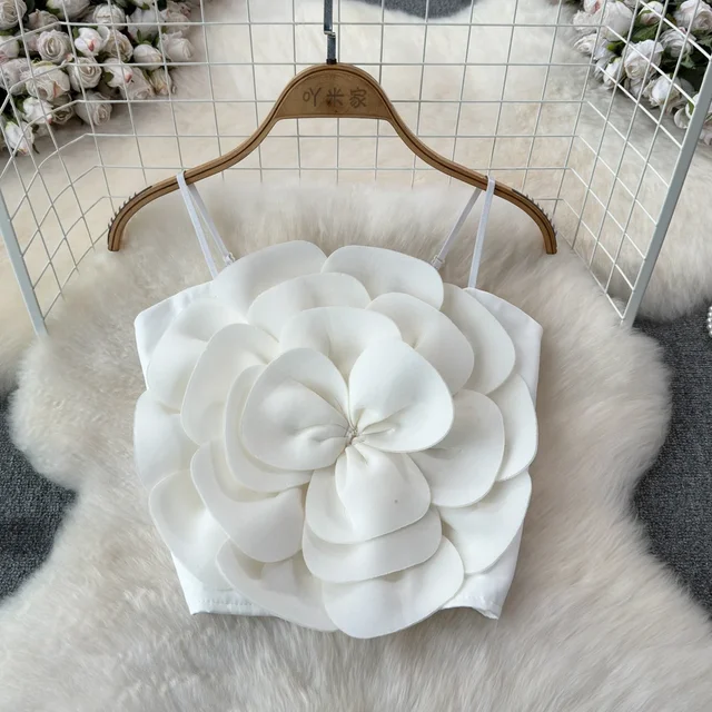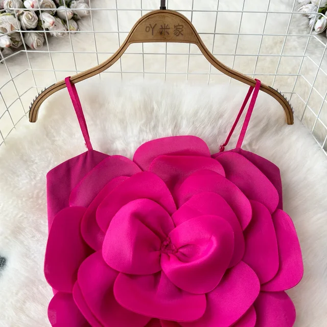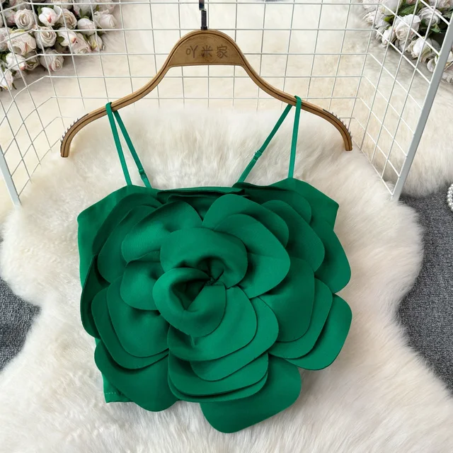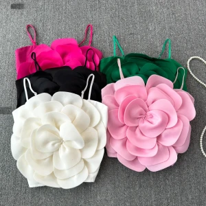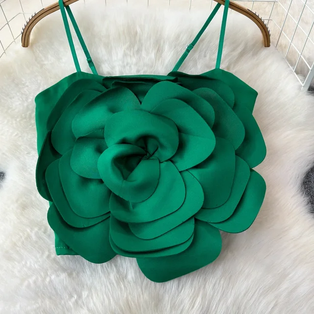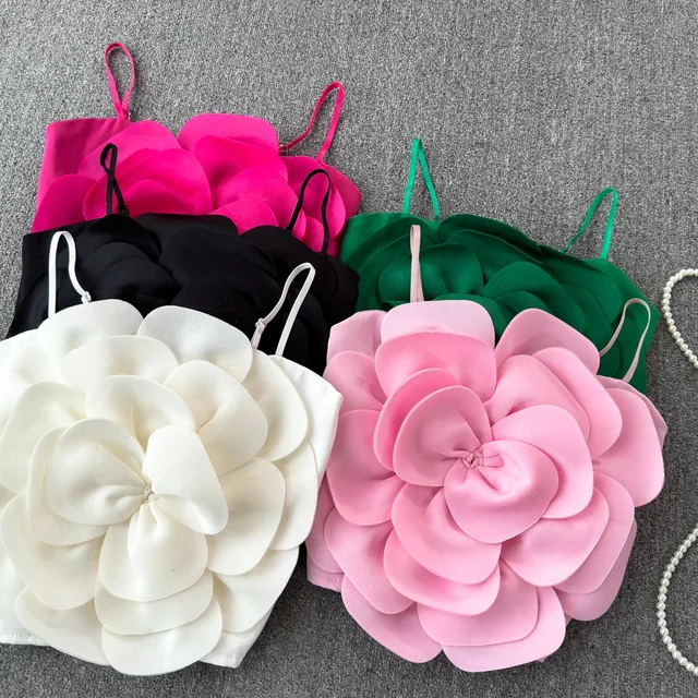 - Product Name: Women’s Summer Crop Top – Stretchy Solid Camisole with Large Flower, Slim Fit