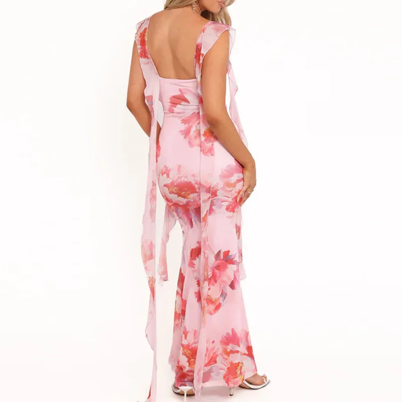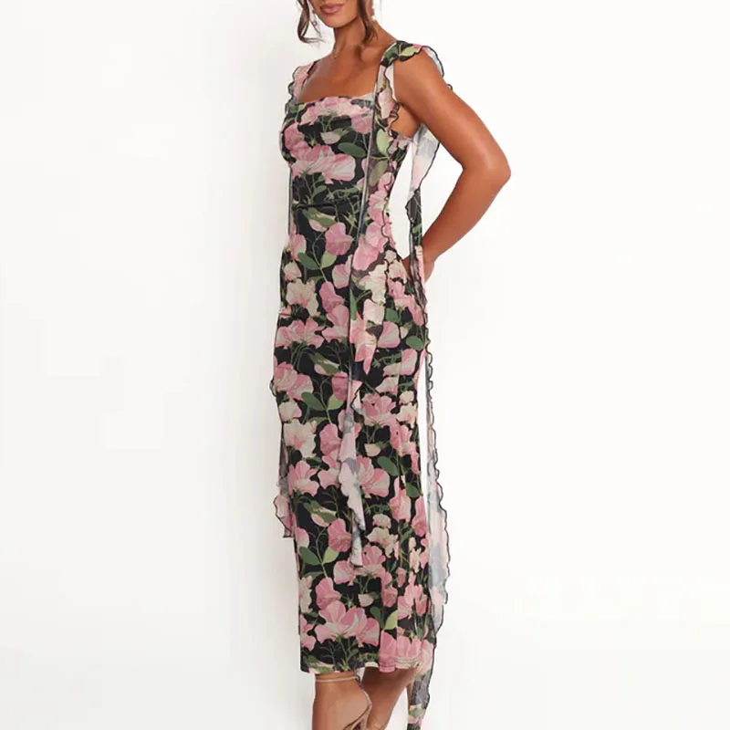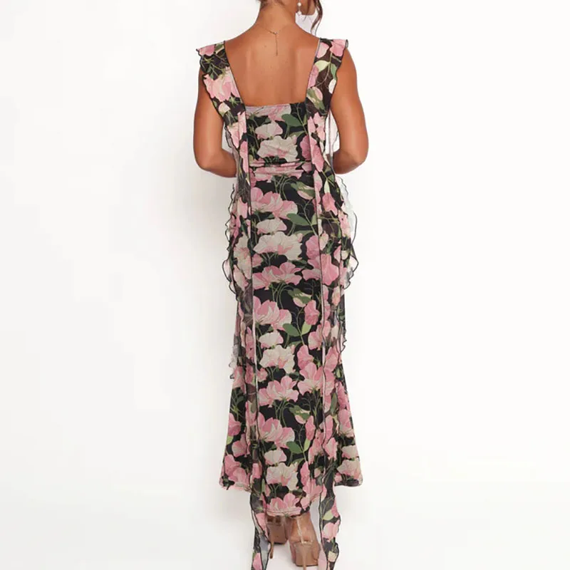 - Product Name: Women Fashion Flower Print Slim Bohemian Dress Casual Sleeveless Hight Waist Maxi Dress Elegant Square Collar Holiday Long Dress