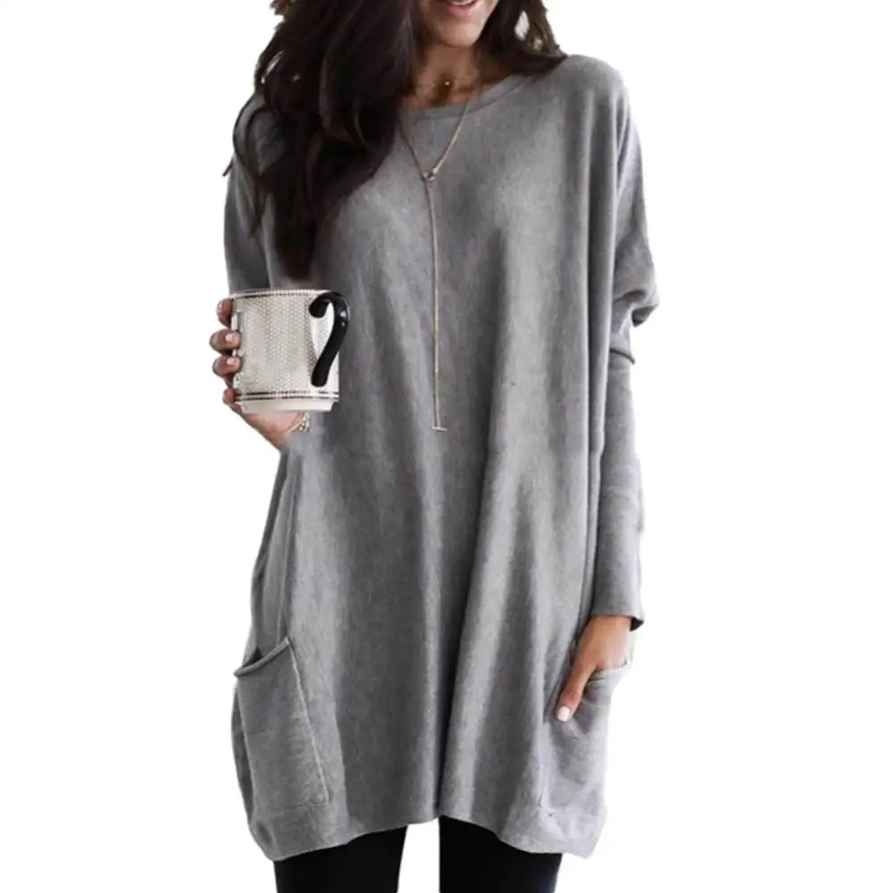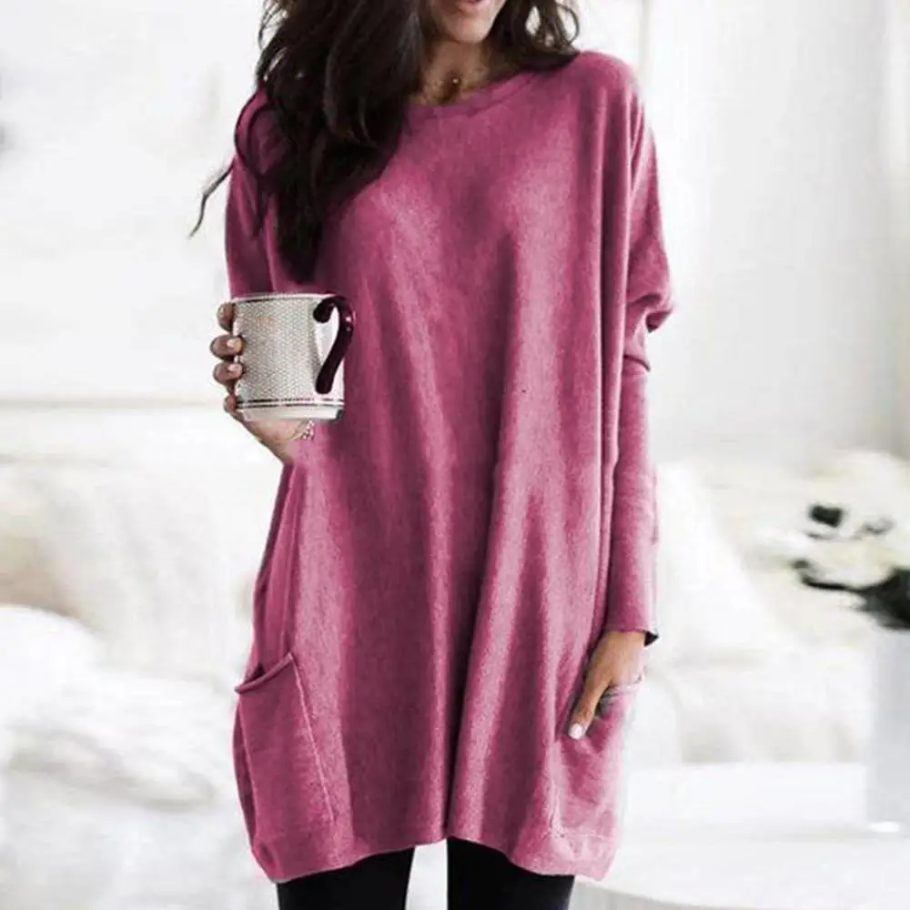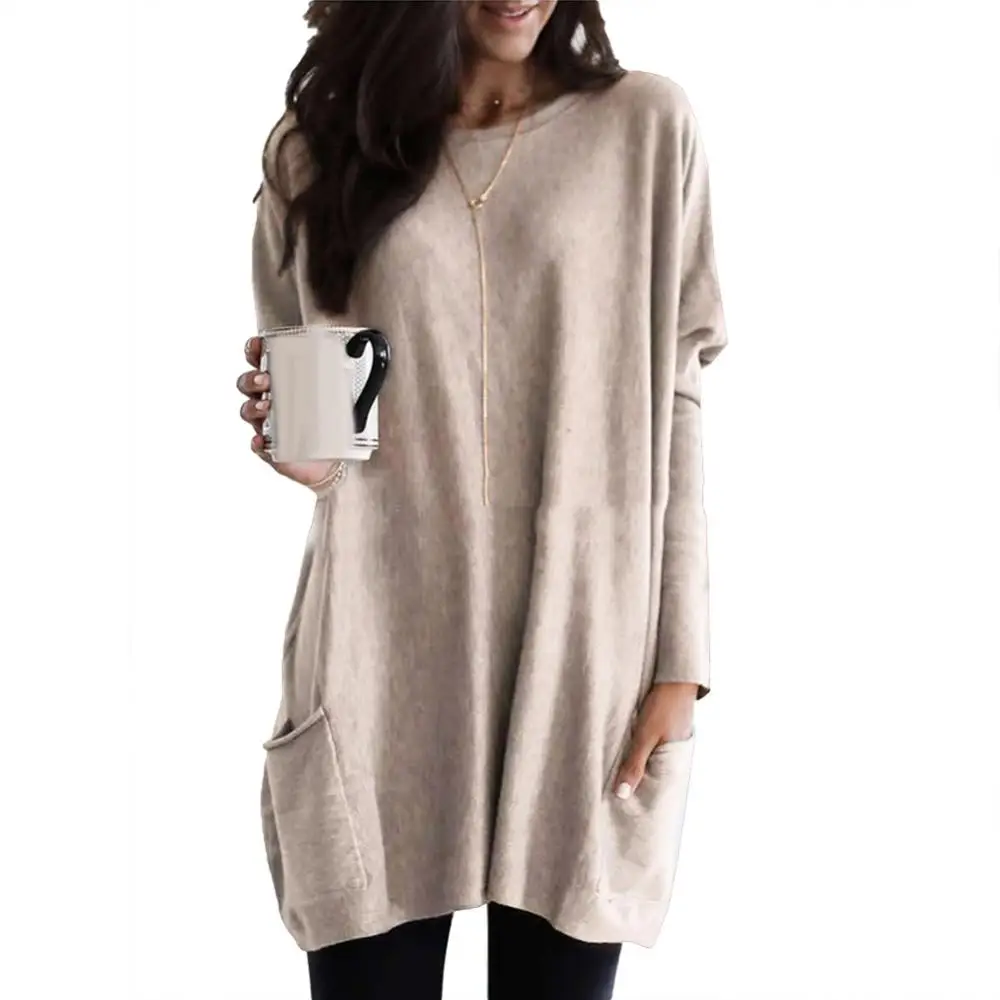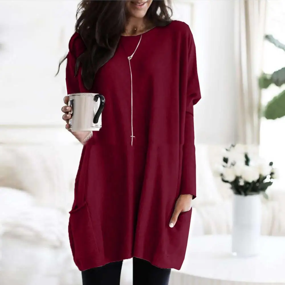 - Product Name: Women Fashion Long Sleeve Solid color long Blouse