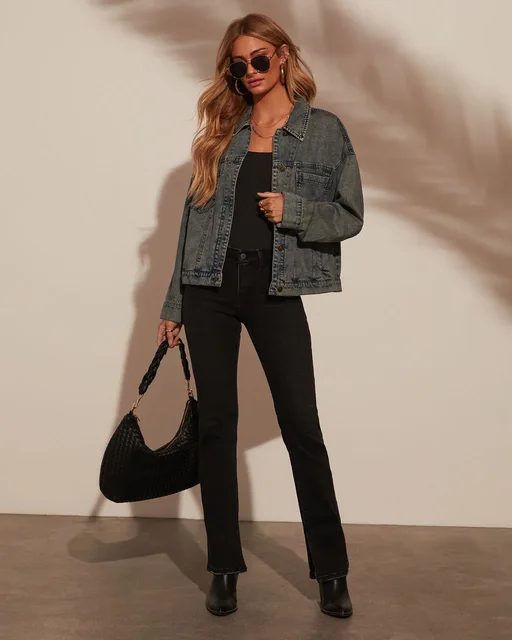 - Product Name: Women Spring Autumn Jacket Solid Color Turndown Collar Button Long Sleeve Pockets Casual Fashion Comfortable Regular Standard