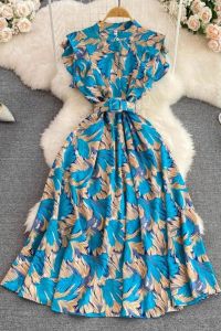 - Product Name: Women Summer Stand Collar Print Elegant High Waist Fashion Party Maxi Dress