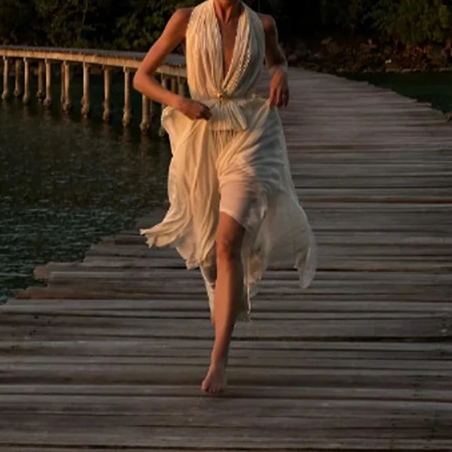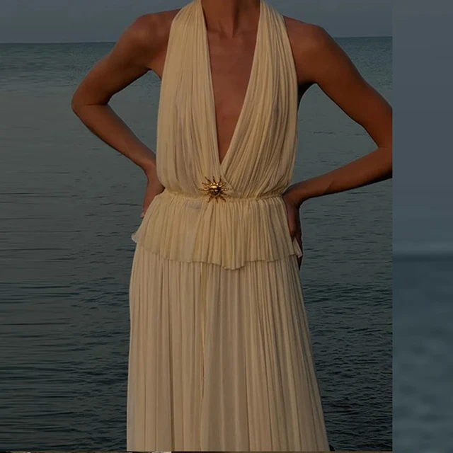 - Product Name: Women's Backless Halter 2 Piece Set – Deep V Top & Pleated Skirt Outfit