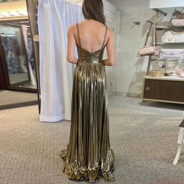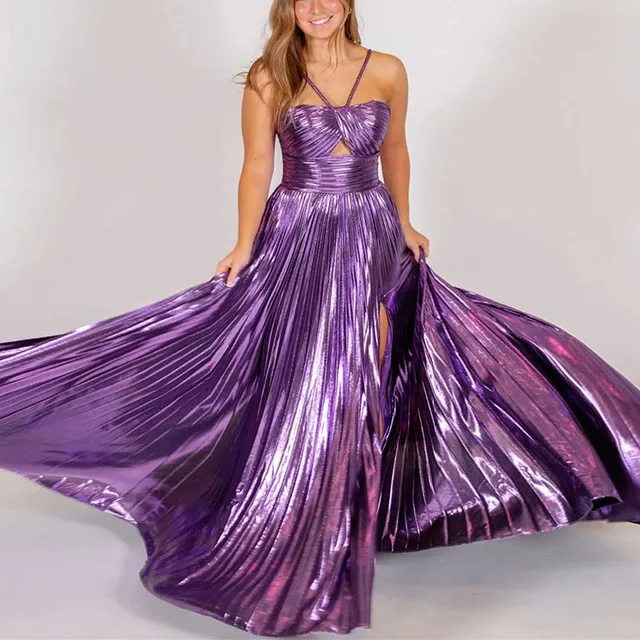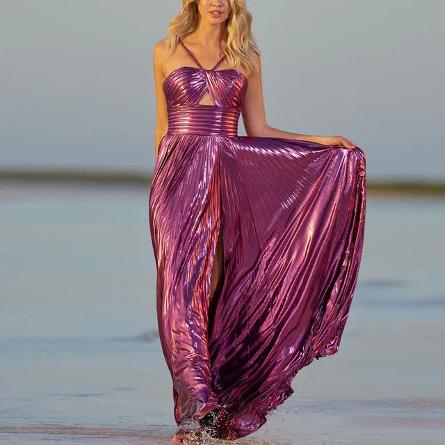 - Product Name: Women's Bronzing Shiny Gowns Evening Dress Luxury Sexy Hollow Strapless Sling Long Dresses Spring Summer Backless Zip Maxi Dress