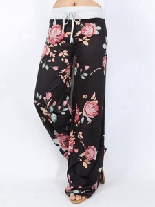 - Product Name: Women's Casual Lace-Up Wide Leg Pants with Printed Pattern