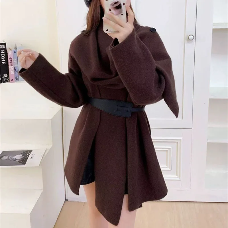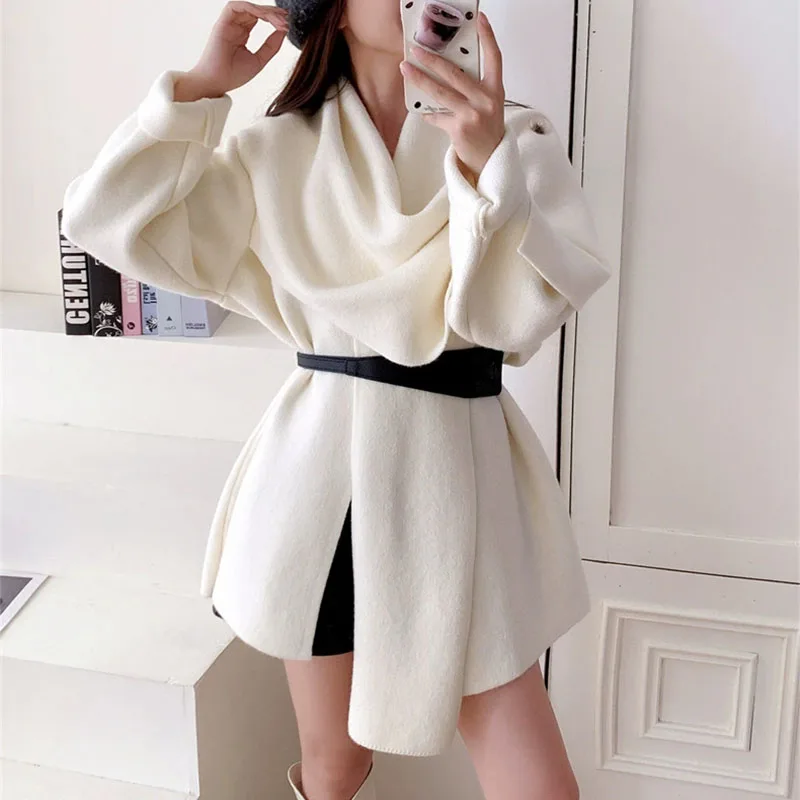- Product Name: Women's Casual Long Sleeve Solid Midi Jacket Winter Fashion Design Sweater Tops Autumn Elegant Asymmetrical Scarf Knitted Coats