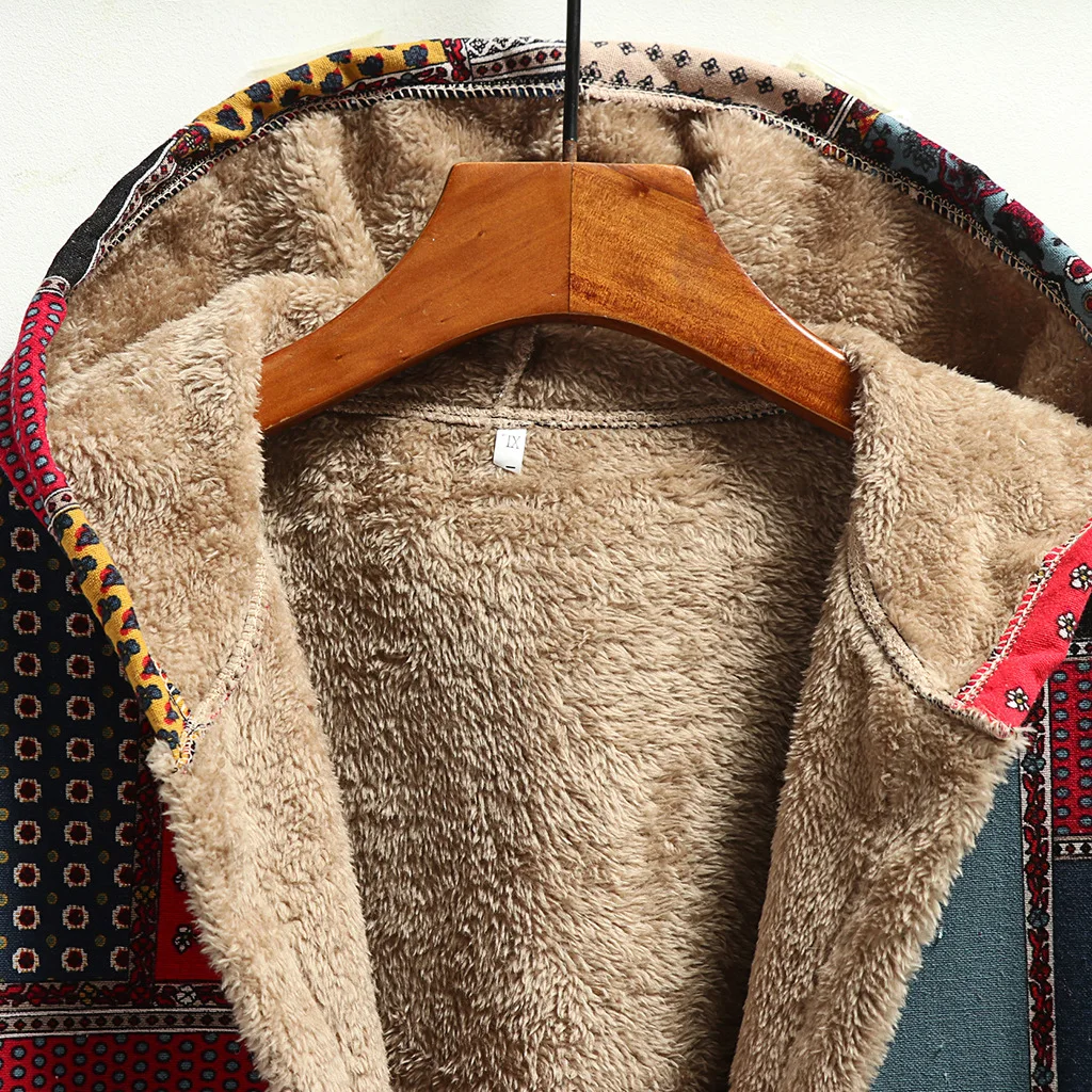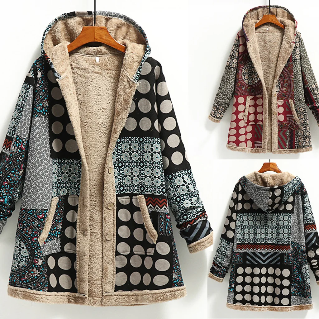 - Product Name: Women's Cotton linen Print Hooded Warm Plush Jacket