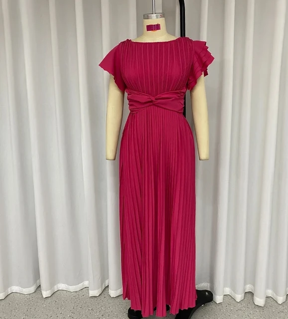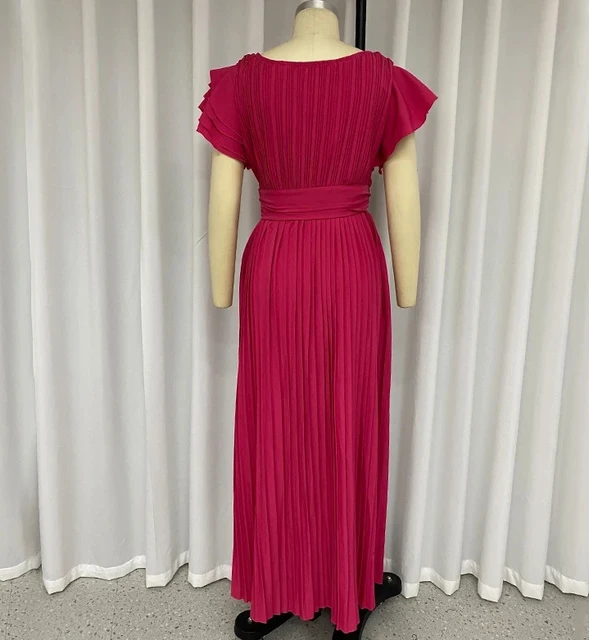 - Product Name: Women's Pleated Maxi Dress – Elegant High Waist Solid Color A-Line Gown