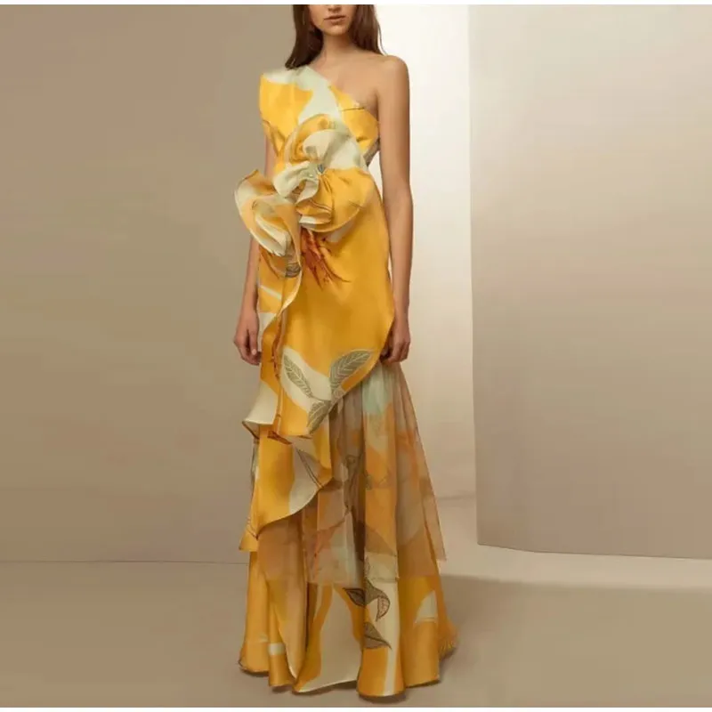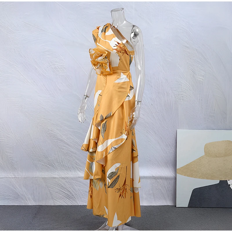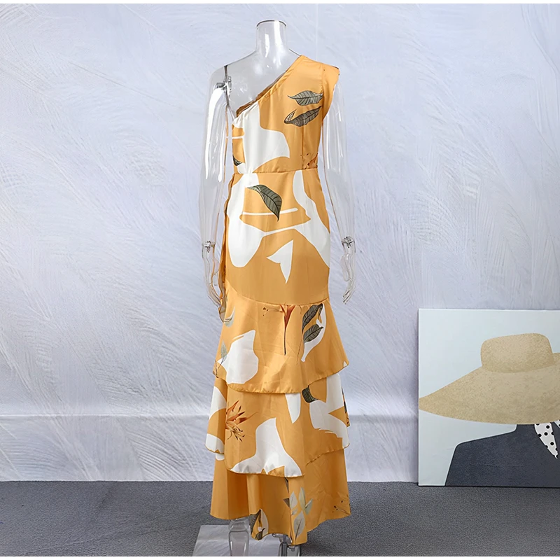 - Product Name: Women's Printed Asymmetrical Slim Retro Backless Sleeveless Wedding Guest Dress