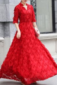 - Product Name: Women's Sexy Elegant Party Long Sleeve V Neck Lace Wedding Guest Dress
