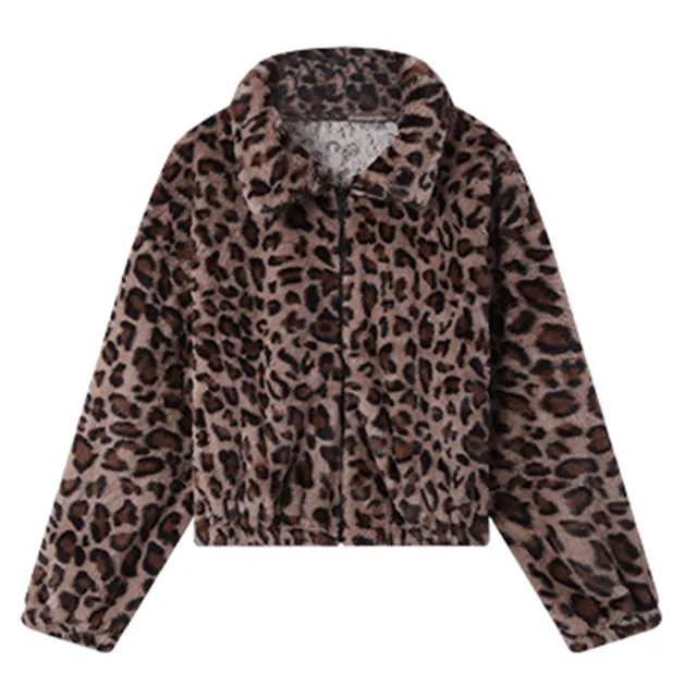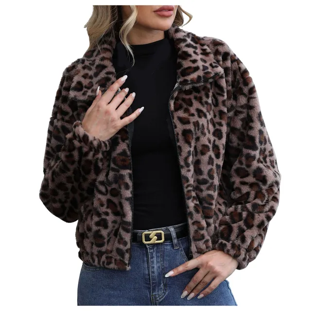 - Product Name: Women's Streetwear Leopard Print Bomber Jacket – Fuzzy Fleece Cropped Coat with Lapel & Long Sleeves